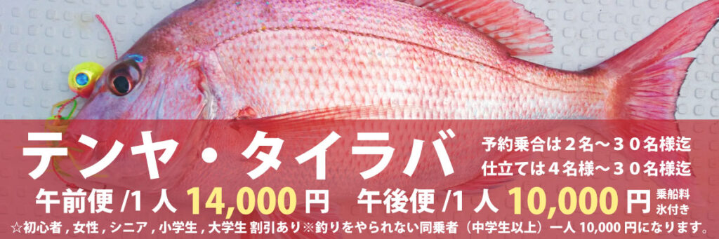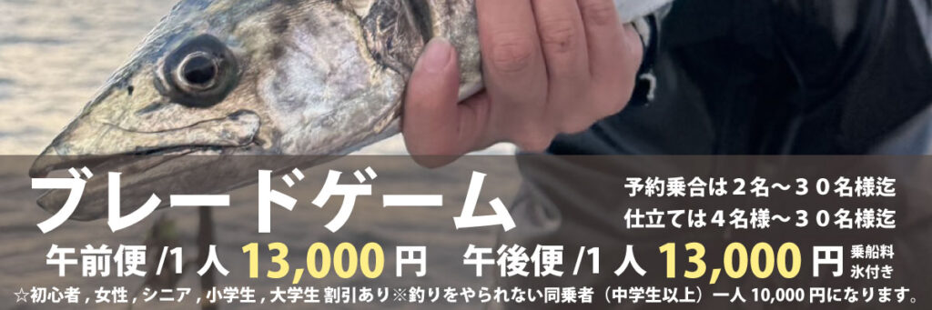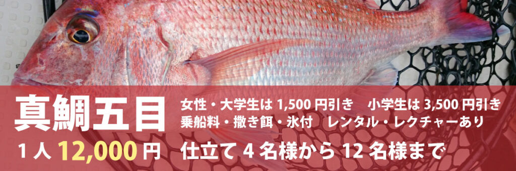 ※ 午前便の出船時間は、お客様のご都合に合わせてご自由に出船時間は決めていただけますが、釣行時間は短くなりますのでご理解とご協力の程宜しくお願いします。(基本:6-7時間の釣行となります)午後便のご予約が入っている場合もあります。