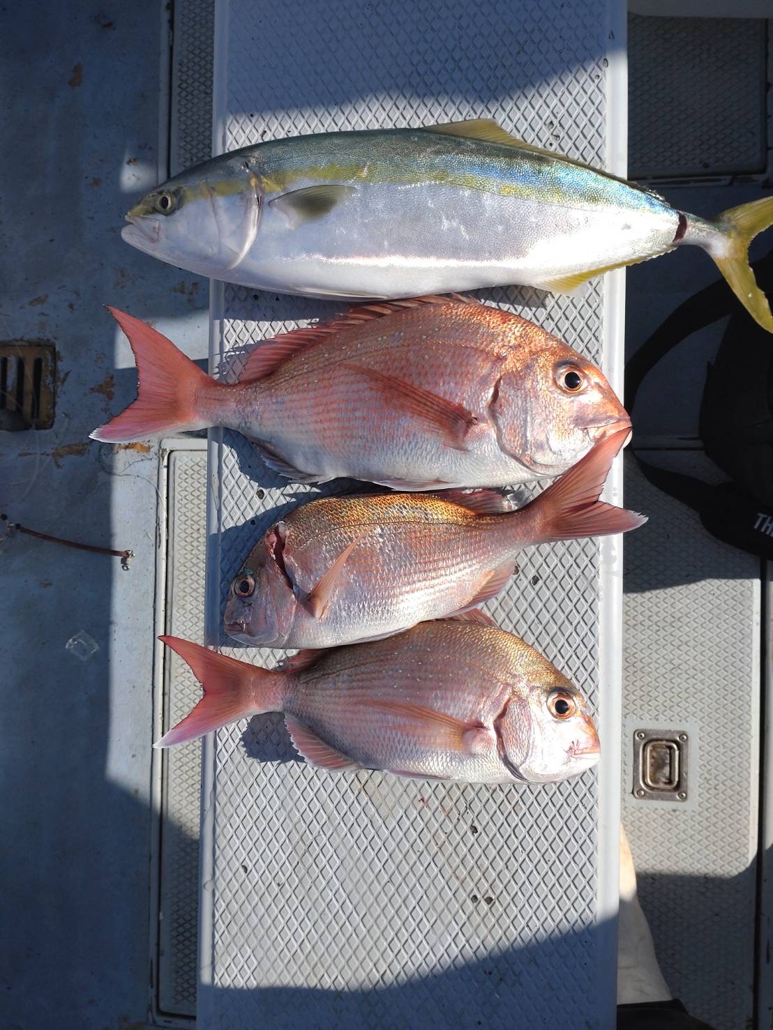 船中:真鯛、1.1k〜1.5k!1〜5尾、他イナダまじりでした!
