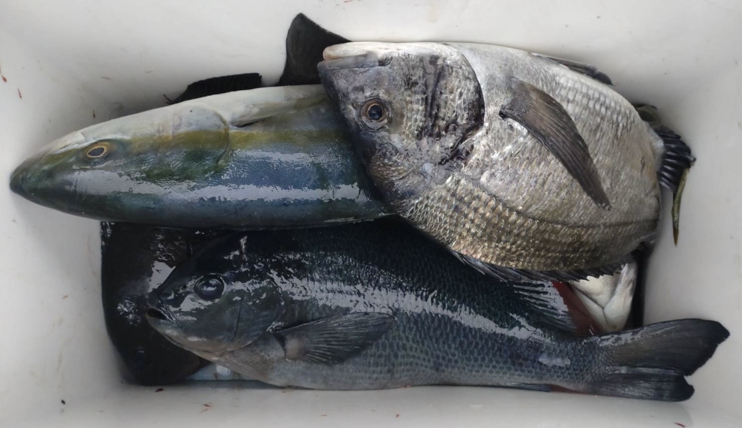 釣果:メジナ、イナダ、クロダイ、ブダイ(30cm前後)、