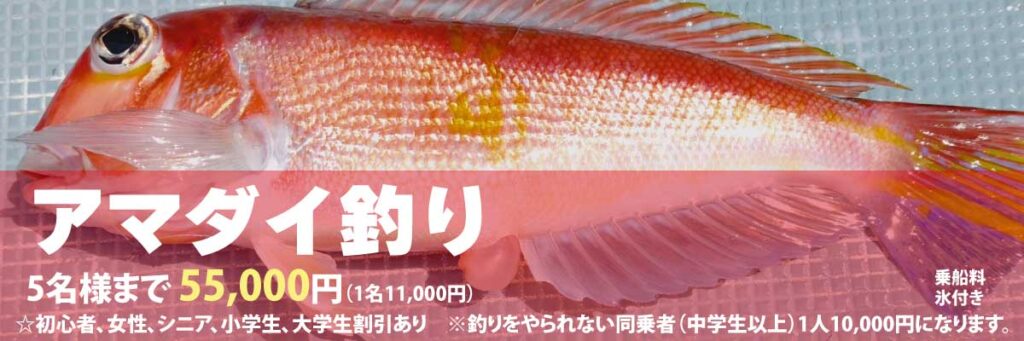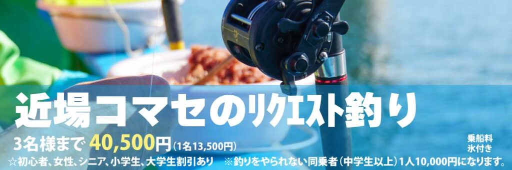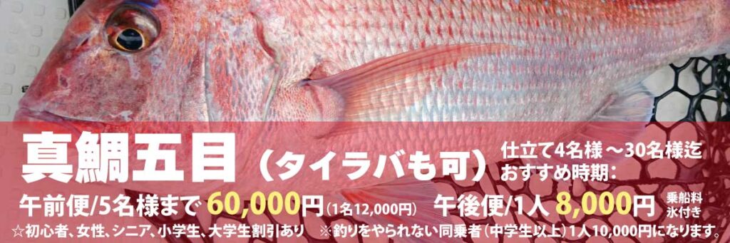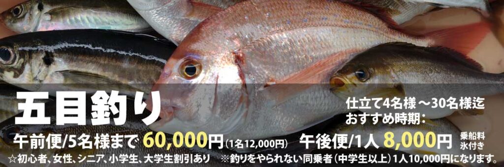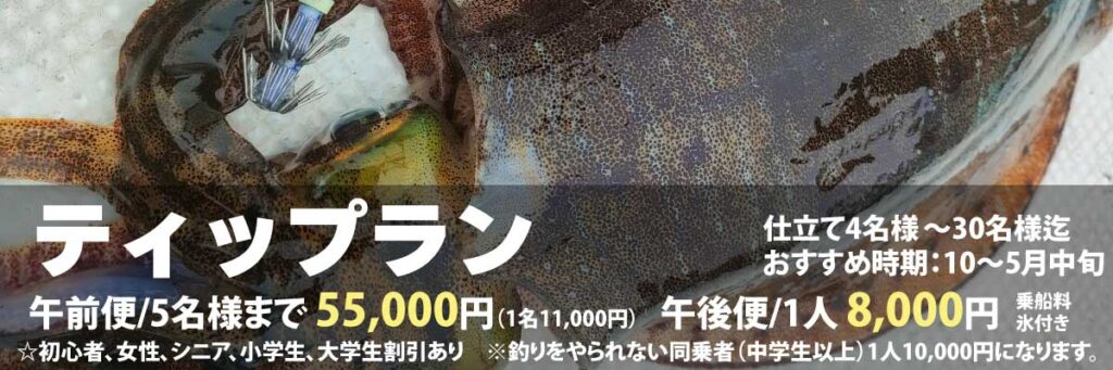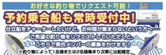 ※乗合は募集の都合上、3日以上前からのご予約をお願い致します。 直前になると仕立てのご予約が入っている際、乗合釣りのご予約をお受け出来ない為です。